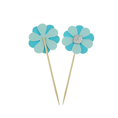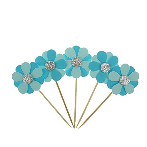 Blue Flower Cake Cupcake Toppers for Birthday Wedding Baby Shower Decoration Pack of 16 by GOCROWN