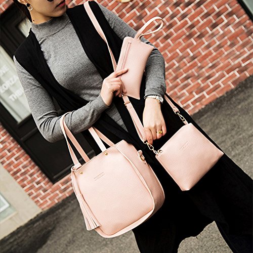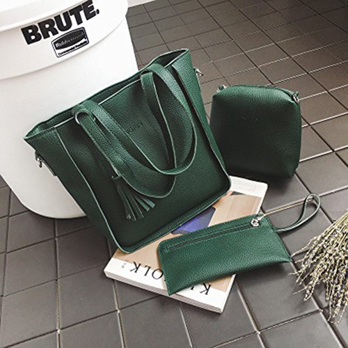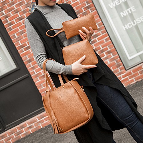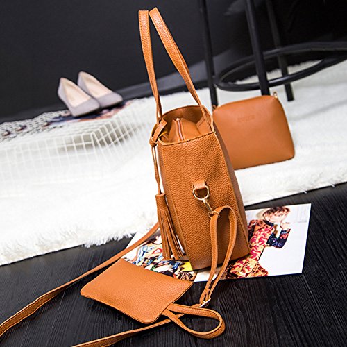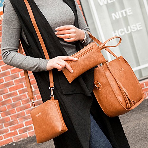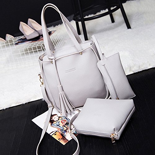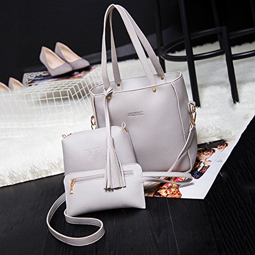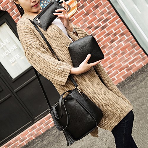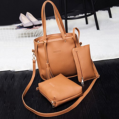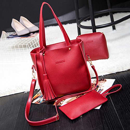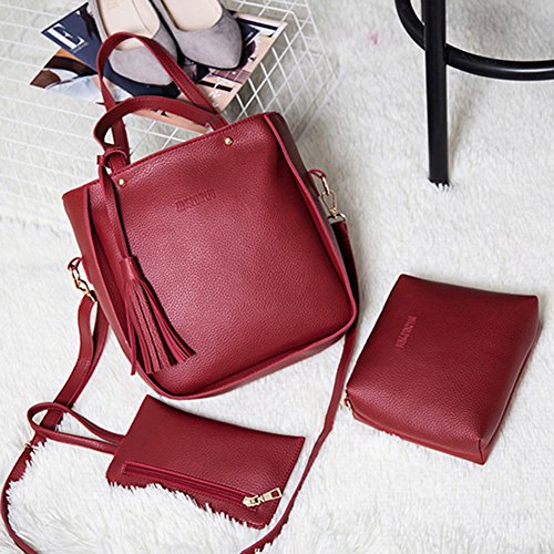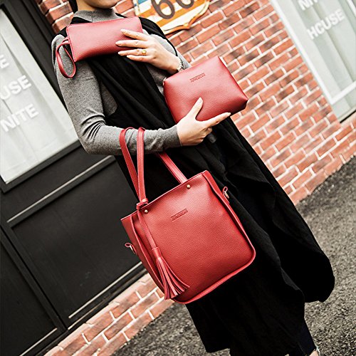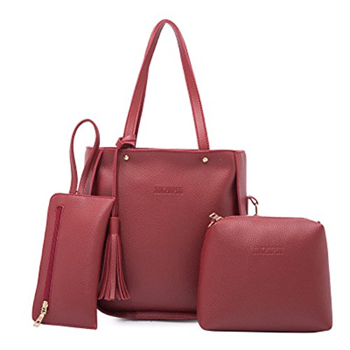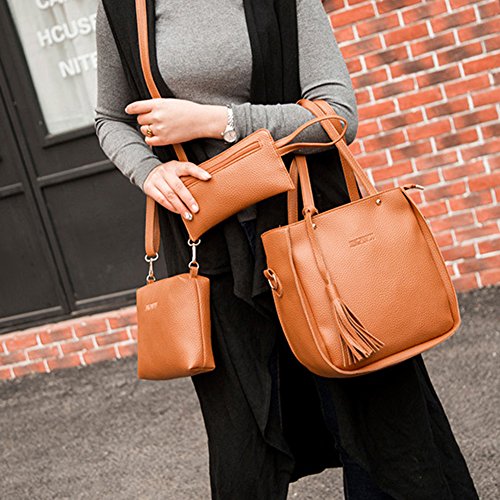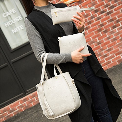 Studio : bjduck99 Publisher : bjduck99 Product Description Type: Bag Set Gender: Women's Quantity: 3 Pcs/Set Material: Faux Leather Closure: Button/Zipper Occasions: Daily Life, Office, Travel, Shopping, Party, etc. Features: Durable, Tassels Decor, Adjustable Shoulder Strap, Fashion Style Handbag Size: 25cm x 28cm x 11cm/9.75" x 10.92" x 4.29" (Approx.) Crossbody Bag: 20cm x 15cm x 6cm/7.80" x 5.85" x 2.34" (Approx.) Clutch Size: 20cm x 1cm x 1cm/7.80" x 0.39" x 0.39" (Approx.) Notes: Due to the light and screen setting difference, the item's color may be slightly different from the pictures. Please allow slight dimension difference due to different manual measurement. Package Includes: 1 x Handbag 1 x Crossbody Bag 1 x Clutch