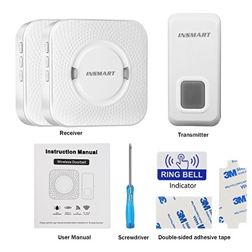 INSMART Wireless Doorbell, Plug-in Push Button with 55 Chimes, 5-Level Adjustable Volume, 1 Remote Button and 2 Plugin Receivers, IP 55,Doorbell Operating at over 1000-feet(300m) Range White
