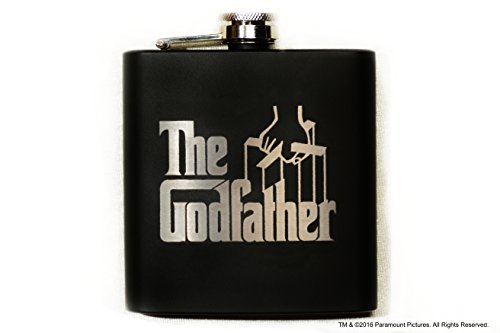 -. Brand : Movies On Glass -. Color : Black -. Feature : The officially licensed Godfather collectible black flask features the movie logo on the front and the Paramount Pictures logo and proof of authenticity on the back for collectors. / This flask is the perfect gift for movie lovers in your life! / Collectible items are the best choice as presents for birthdays, Christmas, anniversaries or other holidays and occasions. / Etched design is burned into the surface of the flask revealing a silver design, making the engraving truly permanent and dishwasher safe. -. Label : Movies On Glass -. Manufacturer : Movies On Glass -. Model : GF-GODFATHE-FLASK -. MPN : GF-GODFATHE-FLASK -. PackageQuantity : 1 -. PartNumber : GF-GODFATHE-FLASK -. ProductGroup : Kitchen -. ProductTypeName : KITCHEN -. Publisher : Movies On Glass -. Size : 6 ounces -. Studio : Movies On Glass -. Title : Movies On Glass - The Godfather Movie Engraved Logo Stainless Steel Flask