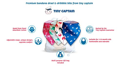 TINY CAPTAIN BABY BANDANA DROOL BIBS FOR GIRLS - PREMIUM SOFT ABSORBENT COTTON MODERN BIB SET - BEST BABY GIRL SHOWER GIFT