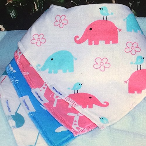 • PREMIUM GIRLS BABY BANDANA DROOL BIBS - The Front side is 100% soft absorbent and durable cotton. The Back side is 100% Polyester Fleece for extra absorbency. Our bibs keep your drooling, teething, and messy baby dry! The soft and gentle feel will keep your babies tender skin dry and rash free. Wet, messy and dirty clothes are no longer an issue. NEVER USE ANOTHER SILICONE OR CLOTH BIB AGAIN! 100% Cotton and DRIBBLE AND MESS FREE FOR LIFE!