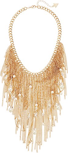 Dramatic chain fringe bib necklace with pearl beads goldtone finish with white imitation pearl Brand : GUESS Item model num : 433655-21 MPN(PartNumber) : 433655-21 EAN : 0748838513346 Package Dimensions(LxWxH) : 10x9x3cm ; 204 g