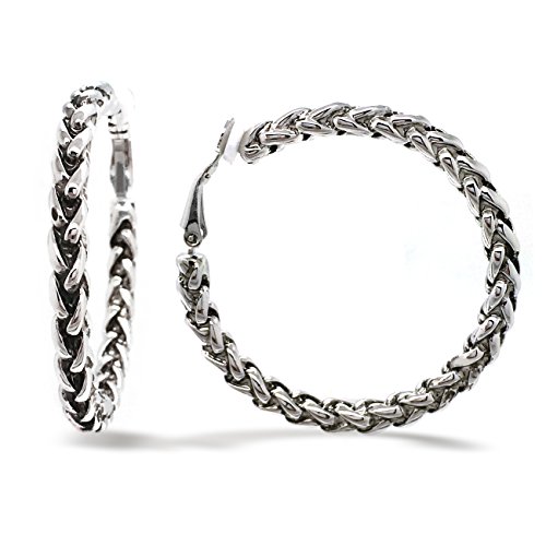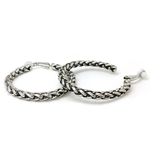 Made of base metal alloy, these antique style hoop earrings are finished with rhodium plating. Featuring a timeless classic braided rope design. Simple and stylish. Secured with clip on backings, these fashion hoop earrings are both casual and trendy for day or night time wear! For Non-pierced ears. These fashion clip on earrings will make the perfect choice for your special someone for Valentine's gift, Christmas gift, Mothers day gift, Birthday gift, Anniversary Gift, or Bridal party gifts.Feature