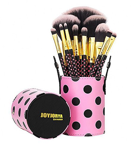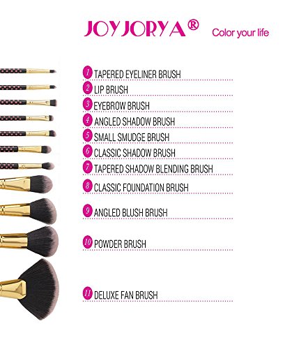 Joyjorya 11 Pcs Pink a Dot Makeup Brush Sets With Travel Case/ Make Up Foundation/Powder/Eye Shadow/Concealer/ Brush