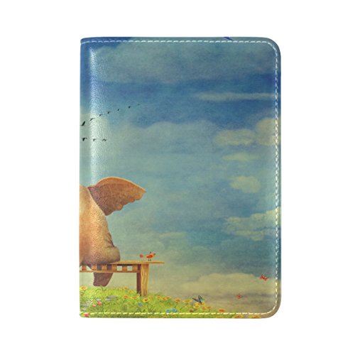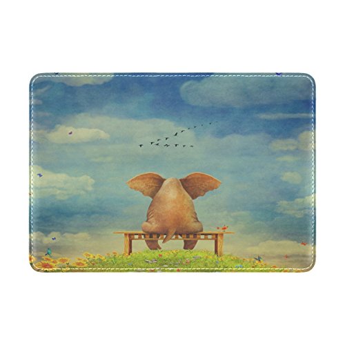 (Sunlome)/Accessories/Luggage, Bags Travel/DIRECT FROM USA/Sunlome Sad Elephant Sitting On Bench The Glade Leather Passport Holder Cover Travel Wallet Case