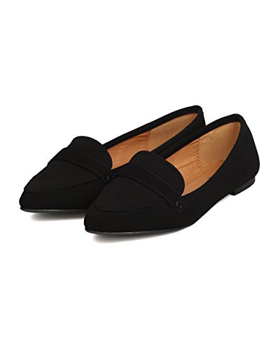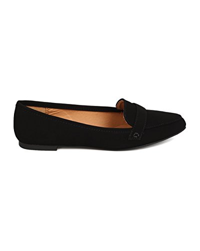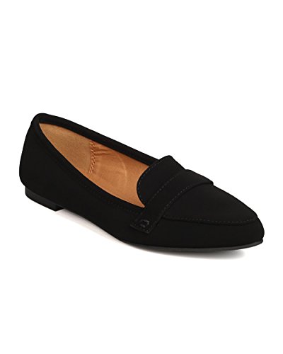 Qupid FH10 Women Nubuck Pointy Toe Slip On Loafer - Black