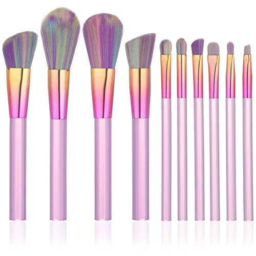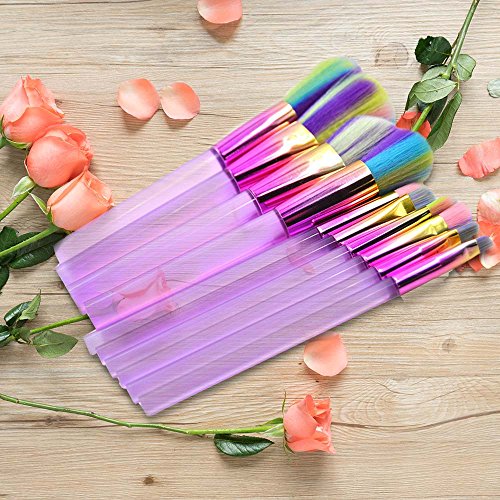 Makeup Brushes Set, Foundation Makeup Brush Synthetic Kabuki Cosmetics Foundation Blending Blush Eyeliner Face Powder Brush Makeup Brush Kit 10pcs (Purple)