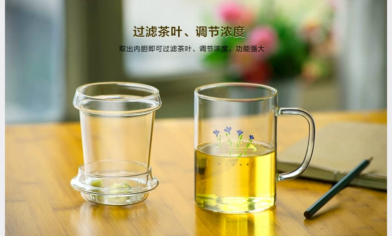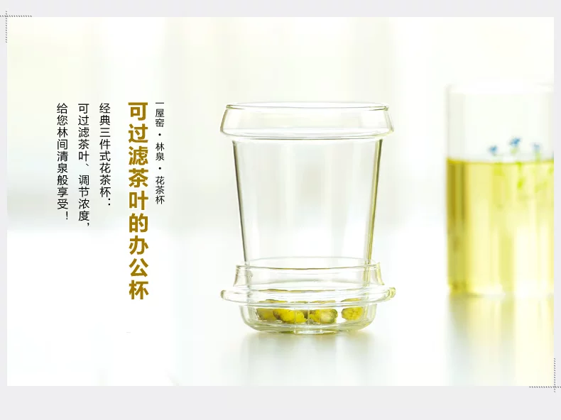 | 这款茶杯为三件套过滤茶杯,拥有过滤茶叶、调节浓度的功能,避免您在喝茶时喝到满嘴茶叶的烦扰,让喝茶成为办公之余的一种享受! |