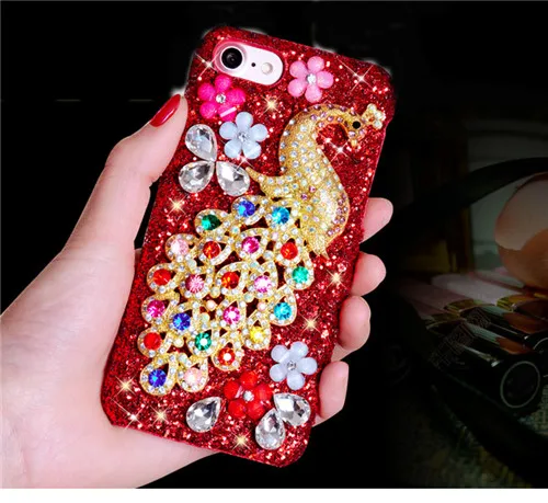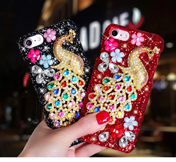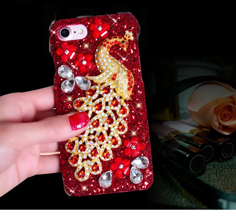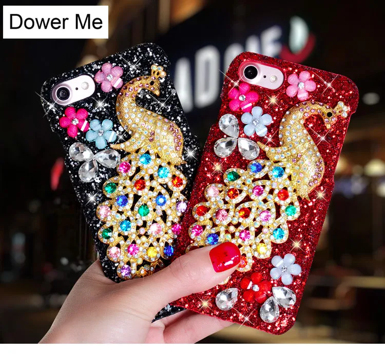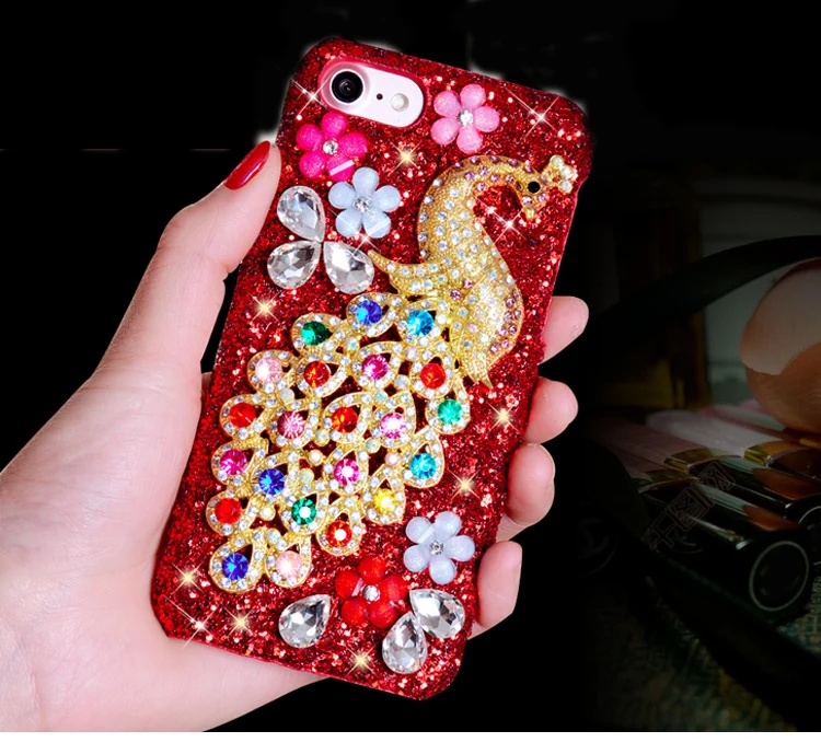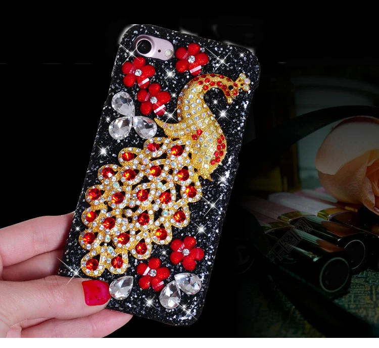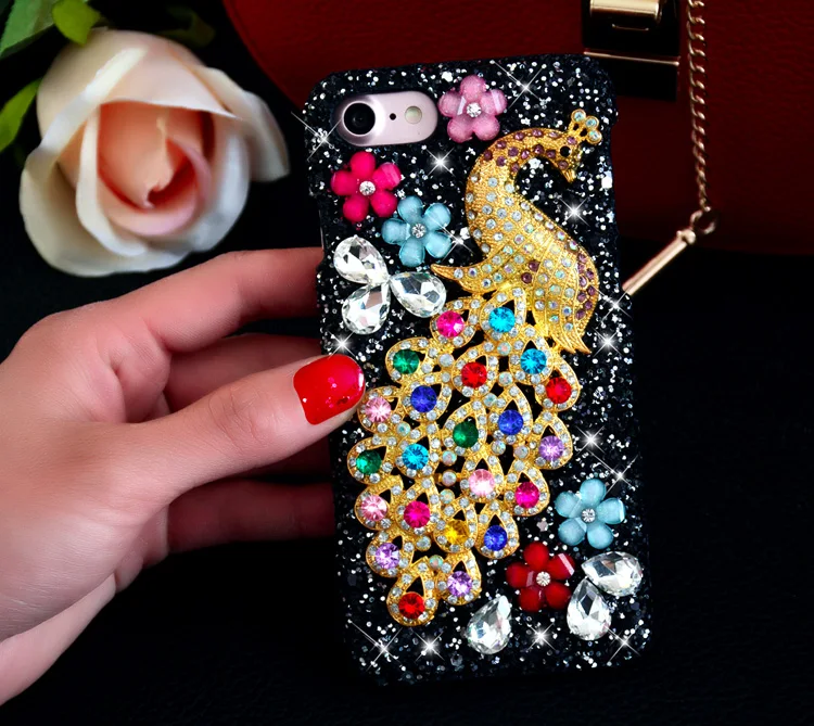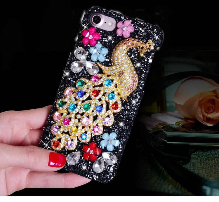 Features:Fashion DIY Handmade Bling Crystal Diamond Colorful Flower Peacock