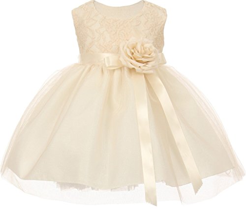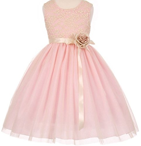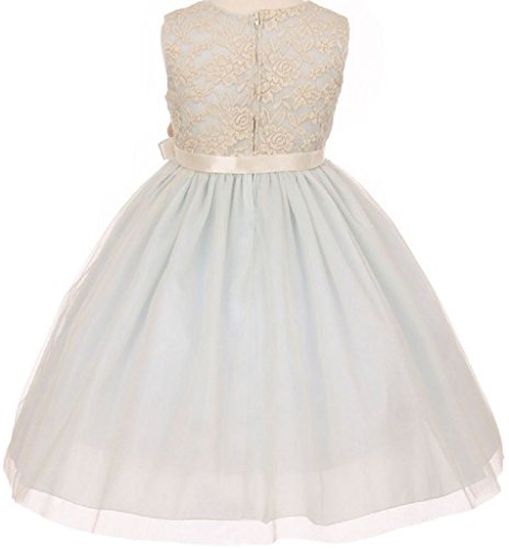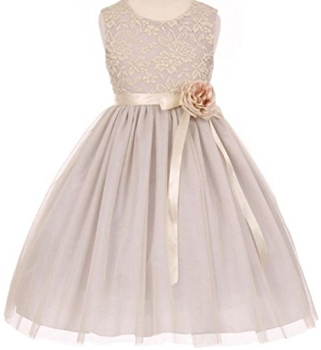 Gorgeous flower girl dress for your little girl. Elegant Contrast 3D Stretch lace tulle dress with satin sash and corsage. Have your little girl wear this dress for Flower Girl Dress, Easter Girl Dress, and other Formal Events.Feature