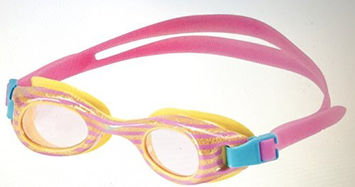 -. Title : Kids Glide P.R.Int Swimming Goggles, Light Pink Stripes with Gold Flecks, Latex Free, UV Protection, Anti-Fog, Flex Fit for Recreational Swimmer 3-8 years