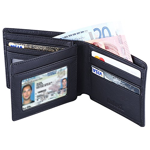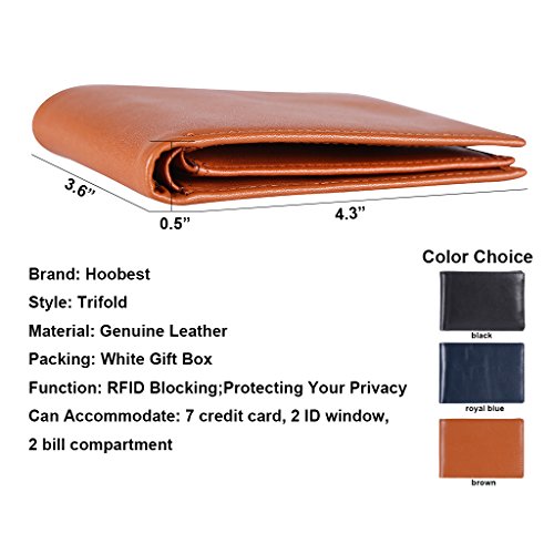 Binding : Apparel Product Description IDENTITY SECURITY: Everyone's wallet are with more cards and ID Card. Credit or Debit (VISA,PASSPORT) Enhanced driver's license Health insurance But,More and More people concern the identity theft, Some Equitment are equipped with NFC technology Which can read the data on your cards easily.Someone has gone through the endless nightmare of battling credit agencies, banks and credit card companies to reverse fraudulent transactions and restore one's good credit. Blocking RFID Technology: Our Wallets are equipped with advanced RFID Blocking Technology,a unique metal composite which specifies in blocking 13.56Mhz or higher RFID signals. Now,It¡?s the time to step up and convert your normal leather wallet for one newer Anti-theft RFID Blocking Wallet.When you¡?re shopping or Travelling aboard,RFID blocking purse protects your Identity information stored on RFID chips. Hoobest RFID Wallet Feature: ?Identity Data Protection ? 100% REAL LEATHER ? Slim and compact design ?More Slots for Cards Product Details: ?SIZE:4.5" x 3.8" ? Eight credit card Slots ? Two ID Window Slots ? Two currency pockets ?Leather NOTED: Our wallets are designed to shield all the contactless credit cards, passports, enhanced drivers licenses, that operate at 13.56 MHz and above. Usually,Only the new 13.56 MHz contactless cards contain sensitive personal data,which could be shielded and protected by our wallet from reading by scanners and electronic pick pocketing. Our wallets do not shield non-smart cards or older low frequency 125 kHz proximity cards. Warranty : We Stick to give satisfied products to you ,If you are unhappy with the product for any reason, you can contact our customer service and they will be happy to assist you . 0