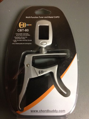 Studio : ChordBuddy Publisher : ChordBuddy Product Description If you're like most guitar players you use a clip on tuner and a capo. ChordBuddy has solved this problem by combining the capo and tuner into one. We are proud to introduce the ChordBuddy capo/tuner. It works just like a regular clip-on tuner when the capo is not in use and clipped on the headstock. The tuning screen changes from white to green when the string is tune. The tuning screen is adjustable 360 degrees for ease of viewing form any angle. Also works for banjo, mandolin, dobro, violin and ukulele. 0