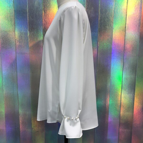 실키한 라운드 블라우스에소매 진주알포인트로 밋밋하지않게 해주어 어느곳에 코디하기좋은 아이템입니다