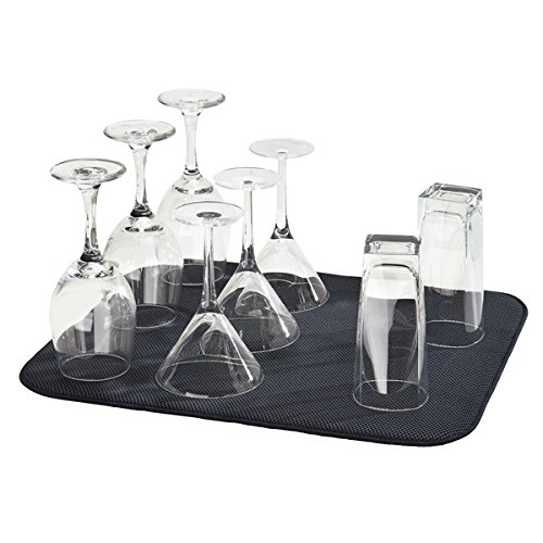 Drying mat features two-sides for improved drying capabilities. Mesh reduces condensation, which is ideal for glassware. Super absorbent Microfiber Terry quickly absorbs water, which is great for pots and pans.