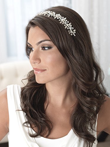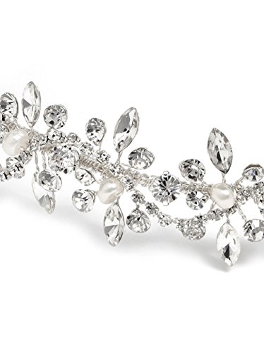 The Freshwater Pearl & Crystal headband is an unforgettable combination of lustrous rhinestones in varying shapes in a vine pattern with breathtaking freshwater pearls. The ornamented portion of this headband measures 11" and approximately 1" wide. Pin loops are located at both ends to allow you to easily fasten the tiara in your hair with bobby pins.Feature