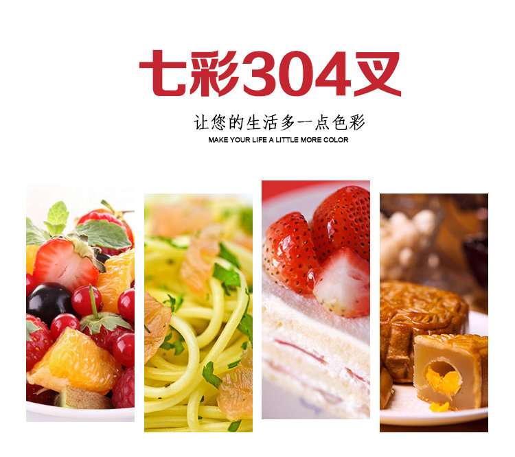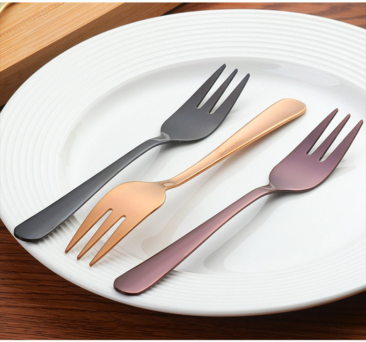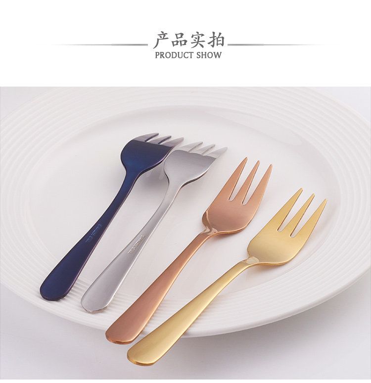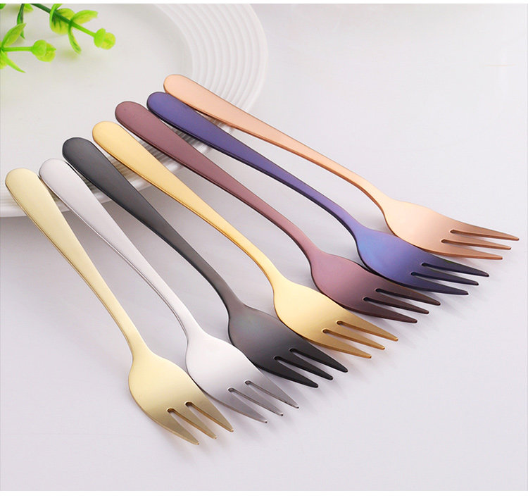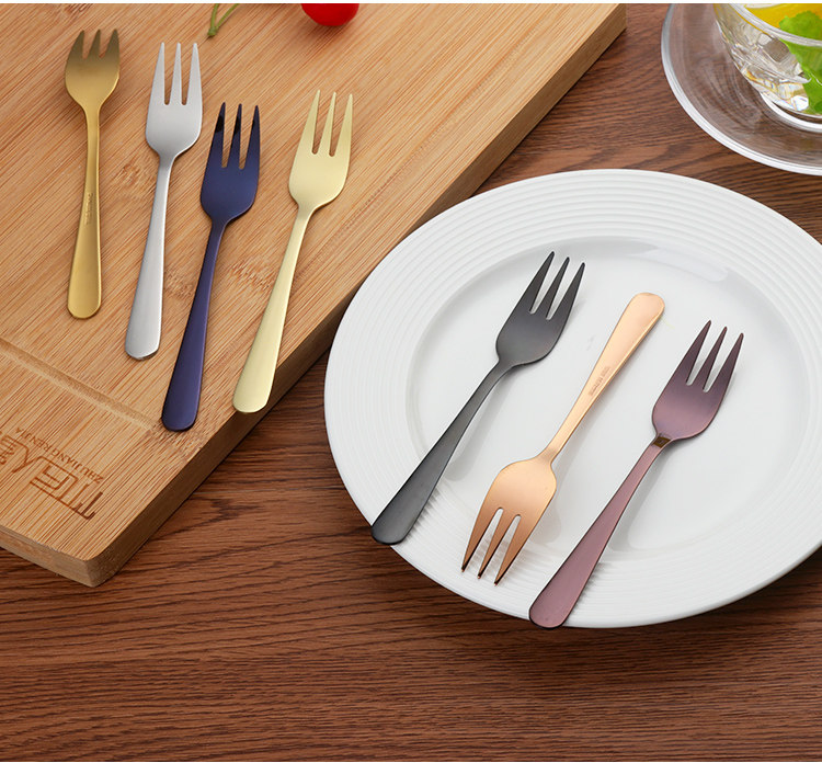 304不锈钢创意七色茶叉 餐厅家用甜品 蛋糕 月饼三齿水果叉