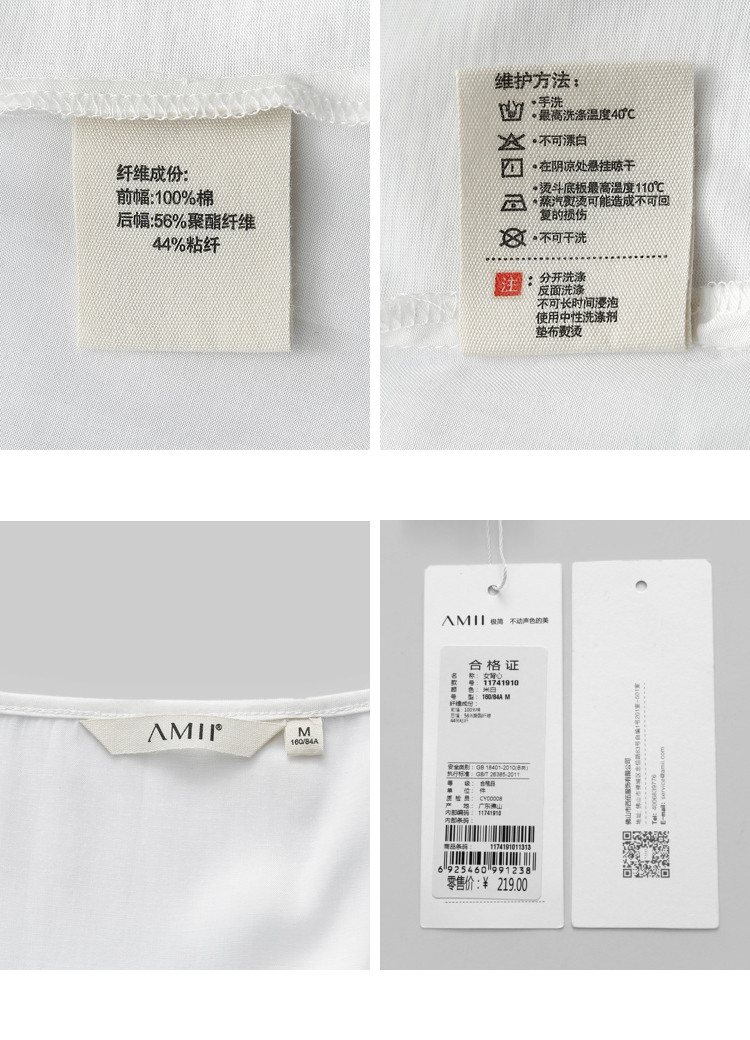| 洗涤标准: | 40℃以下手洗110℃以下垫布熨烫不可漂白不可浸泡悬挂晾干不可干洗 |