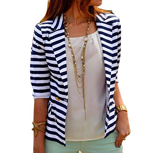 -. Title : lantusiレディースストライプカジュアルキャリア長袖ブレザーノッチラペルボタン留めアウター
