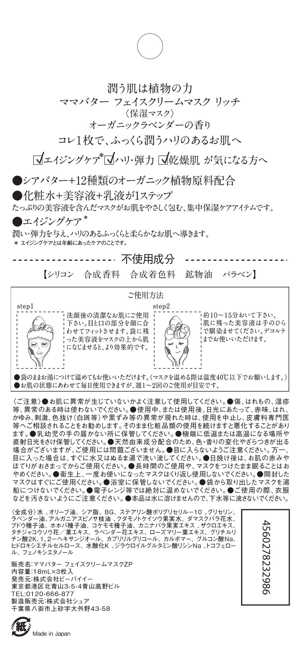 Japan Health and Beauty - Mamabata face cream mask rich 3 pieces *AF27*