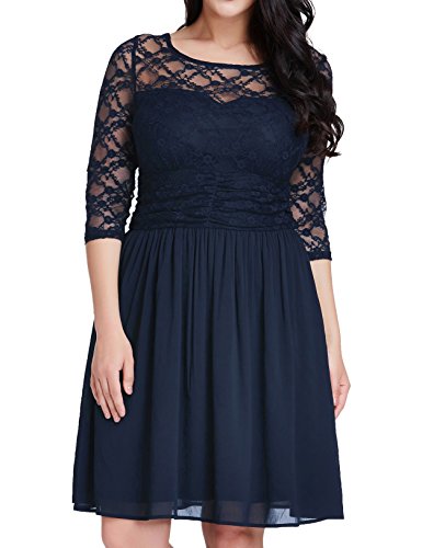 Made with stretchy lace top. 3/4 sleeves. Fully lined except sleeves. It comes with back zipper and back button for ease of use.