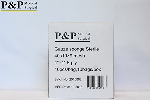 -. Title : GAUZE SPONGE COTTON STERILE 8 PLY SIZE: 4 X 4 ,Total= 10 boxes = 1000 pads (10 Pcs/bag, 10 bags/box) (Grade Class I(a) cotton raw used for production) MANUFACTURED BY P&P MEDICAL SURGICAL LLC