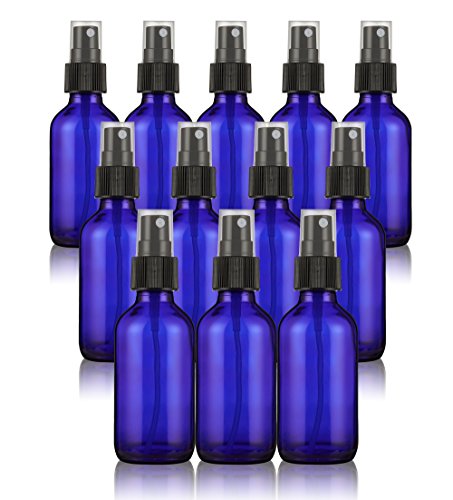 12 Pack Blue Mist Glass Spray Bottle – Mini Fine Mist Spray Atomizer Pumps Essesntial Oils, Perfumes, Cleaners Refillable & Reusable Empty Glass Bottles 2 oz Blue