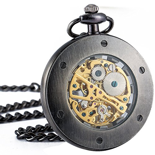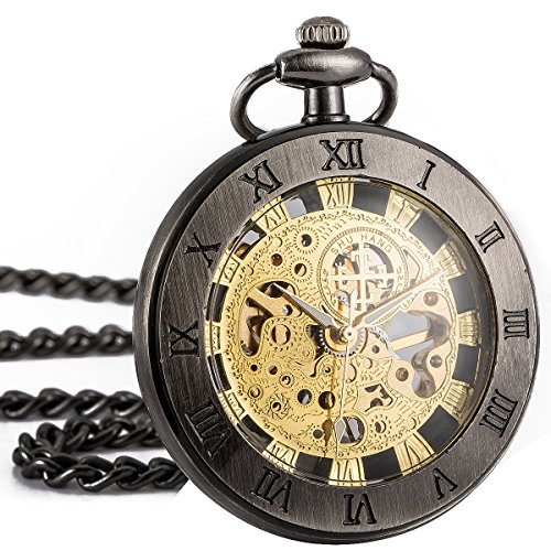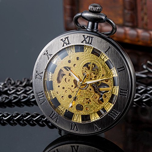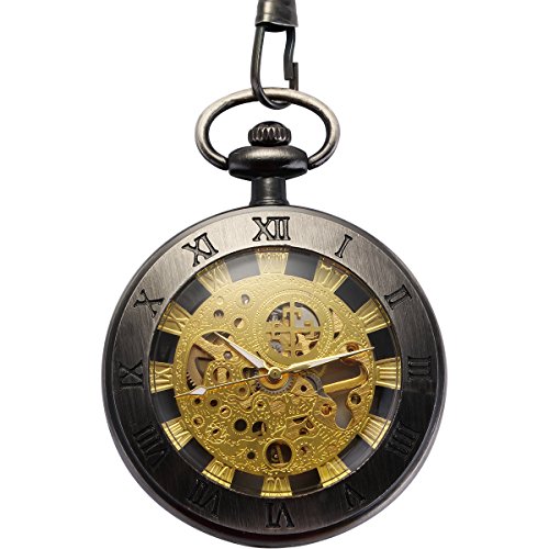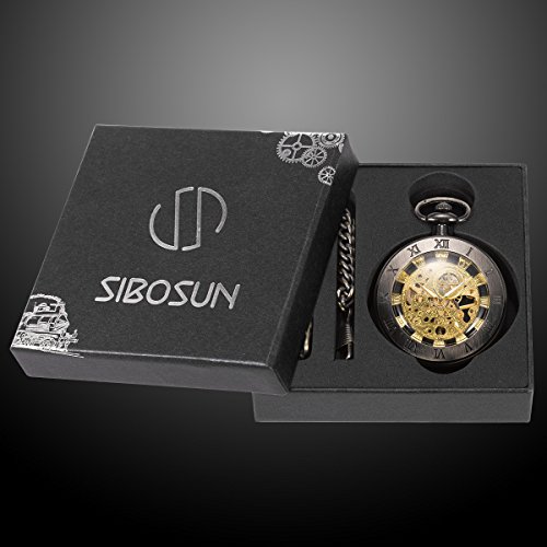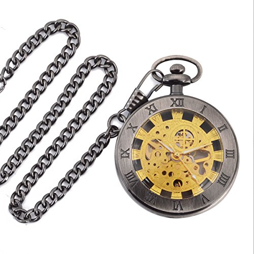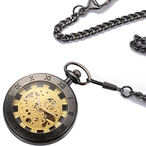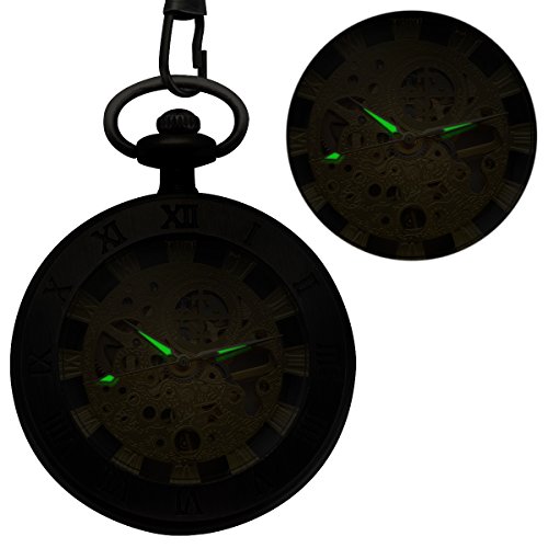 Product Description Features: 1.Classic series pocket watch is the best gift for your love, seniority or yourself 2.100% brand new with excellent workmanship 3.Retro roman numerals dial and alloy chain 4.Elegant design with precise mechanical movement 5.Skeleton and transparent dial shows exquisite movement and structure within the watch 6.Removable key chain with a clip at the end How to use/set mechanical pocket watch ? Once you receive the mechanical watch: A. Setting time?? Pull the crown away from base of the watch and turn the crown clockwise until reaching the exact time. B. Winding the watch?? Push the crown back into place along the base of the watch and winding up the watch clockwise rotation with 10-15 turns. The power will be full(Over winding will ultimately break the spring). Do this one time each day (before sleeping). Otherwise, it will stop working. Please do not over winding up the watch if you feel the crown is tight. Specification (1 cm=10 mm=0.394 inch) (approximate) Case diameter: 47mm approx. Case thickness: 13.5mm approx.(cover included) Chain Length: 350mm approx. (hook included) Chain Material: Alloy Package Includes: 1* Pocket Watch 1* Chain 1* Gift box 0 |