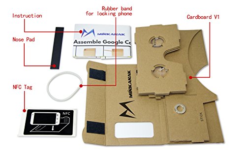 -. Binding : Electronics -. Brand : MINKANAK -. EAN : 0601913398194 -. Feature : BIGGER LENS COMPATIBLE WITH ALL SMART PHONES: MINKANAK Google Cardboard set is redesigned on the basis of original google cardboard, the bigger lens and special design let our products be compatible with all the smart phones with screen from 3.5" to 6", fully compatible with Nexus 4/5, Moto X and Galaxy S4/S5/S6; Partially compatible with( No magnetic control function but not affect 3D viewing experience): HTC One, Moto G, iPhone 5/5c/5s/6, Galaxy S3. / COMPLETE GOOGLE CARDBOARD KIT: The MINKANAK VR kit is better Google Cardboard kit on Amazon, we provide all the add-ons you have seen and never seen, including head-strap, magnetic clicker, white rubber band for locking phone, reprogrammable NFC chip and soft nose pad. / BEST 3D VIEWING EXPERIENCE: MINKANAK Google Cardboard set take high quality biconvex lenses with a 45mm focal length, which give you a truly stunning, engrossing VR experience by converting your smart phone to your private 3D cinema. / PERFECT CONSTRUCTION AND REINFORCED MATERIALS: MINKANAK Google Cardboard kit take imported reinforced cardboard material, which is much more robust than the other ones on Amazon, our precise machine cut and printing also set us apart from other cheaper alternatives. / EASY SETUP: Through our easy printed instruction with QR codes, you can assemle your MINKANAK virtual reality viewer in minutes and get fast access to a range of fantastic VR ready experiences from games to scenic tours! -. Label : MINKANAK -. Manufacturer : MINKANAK -. Model : MINKANAK-002 -. MPN : MINKANAK-002 -. PackageQuantity : 1 -. PartNumber : MINKANAK-002 -. ProductGroup : Speakers -. ProductTypeName : CE_ACCESSORY -. Publisher : MINKANAK -. Studio : MINKANAK -. Title : Google Cardboard Kit DIY 3D glasses by MINKANAK Bigger Lens Virtual Reality Video Viewer Compatible with Android and Appple with Head Strap, NFC, Nose Pad, Forehead Pad, and Easy Instruction -. UPC : 601913398194