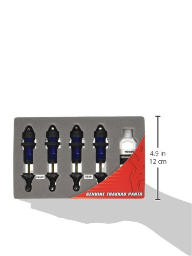 Whether you’re looking for the ultimate in damping performance and consistent lap-after-lap control, or you want to customize the look of your truck, the new blue-anodized GTR shocks are the perfect addition to your model. The GTR design features a machined, threaded aluminum body with an oversized spring collar for easy and precise preload adjustments. The spring perches are vented to help prevent dirt from packing around the X-ring seals, and hard-chrome shafts resist stiction for smooth action and consistent performance. Inside the shock, volume-compensating bladders are used to ensure perfect damping throughout the travel range. Blue-anodized GTR shocks are sold fully assembled in sets of four complete with silicone fluid. The anodized aluminum bodies are also available separately and are a direct fit for all GTR shocks. Use Traxxas stock and hop-up replacement parts to get the most out of your Traxxas RTR vehicles. This product is made from high quality materials and designed for long-lasting performance. This is replacement hardware for use on Traxxas vehicles; consult your user's manual for exact parts listings.Feature