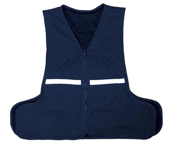 爽快素材のクールマックスと超吸水素材のベルオアシス、さらに保冷剤を4個装着しており、トリプルで身体全体を効果的に冷却します。反射テープがついており、夜間もご使用頂けます。サイドの面ファスナーでサイズ調整が簡単にできます。 |