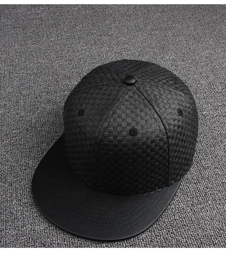 상품 내용 2017 힙합 펑크 평면 스냅 백 모자 남성 여성 쿨 PU 정점으로 밀짚 야구 모자