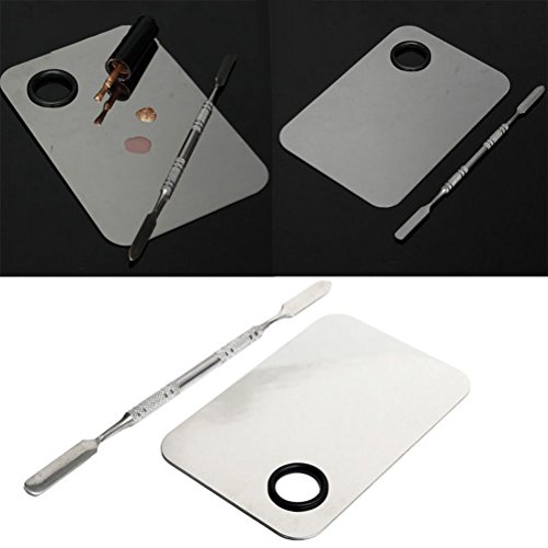 Color: Silver.,Material: Stainless steel.,Palette size: Approx. 15 x 10cm / 5.91 x 3.94 inch (L x W).,Spatula length: Approx. 16cm / 6.29 inch.