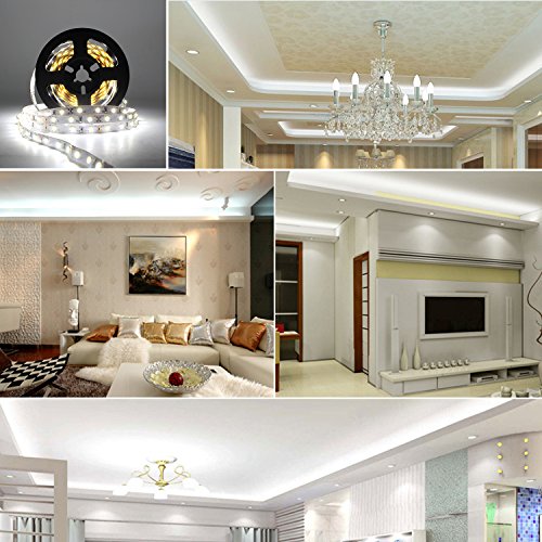 LED Flexible Light Strip,16.4ft/5M Daylight String Lights with 300 Units SMD2835, 12V DC Non-Waterproof LED ribbon, 72Lm/ft Flexible LED Rope Strips for Home Kitchen Car Bar Indoor Party Decoration