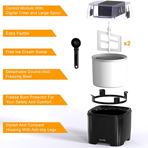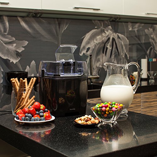 Our Ice-cream maker is designed to prepare soft-serve ice-cream, frozen yogurt and sorbet from a variety of recipes. Follow the instructions to get basic recipes and use your imagination and creativity to invent your own "know-how" delicacy. Make sure to place the freezing bowl in your freezer at least 8 hours in advance (we suggest you simply store the inner bowl in a freezer for those "suden guests situations". Prepare a recipe mixture following the instructions, allow it to chill for a few minutes to get better results. Place the inner bowl in the machine and assemble it completely. Make sure you have the machine running and pour the mixture in the inner bowl. Leave about 2 inches from top, because the mixture will increase in volume and may rize over the top, if overfilled. Now sit back and relax, or watch the mixture turn into soft-serve ice-cream. Serve in chilled bowls to avoid quick melting.Feature