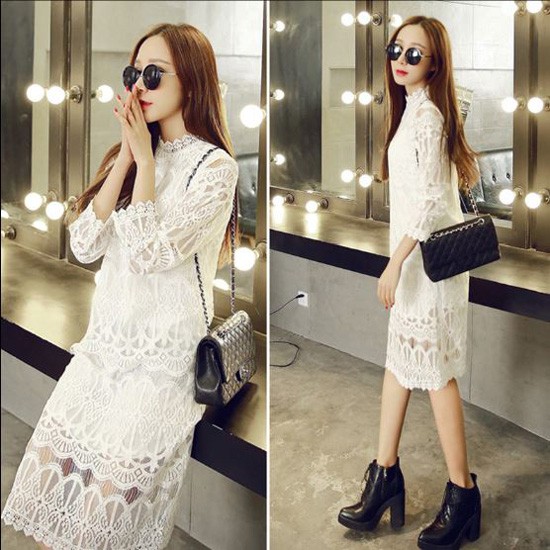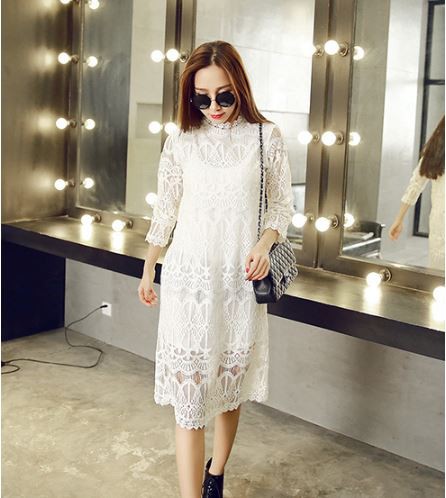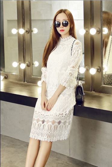 レーシーなデザインがフェミニンなワンピースです。