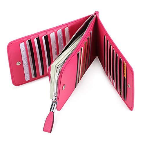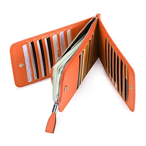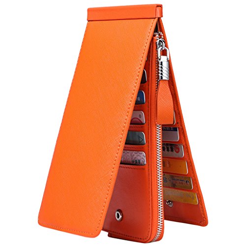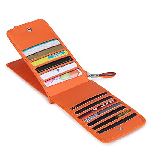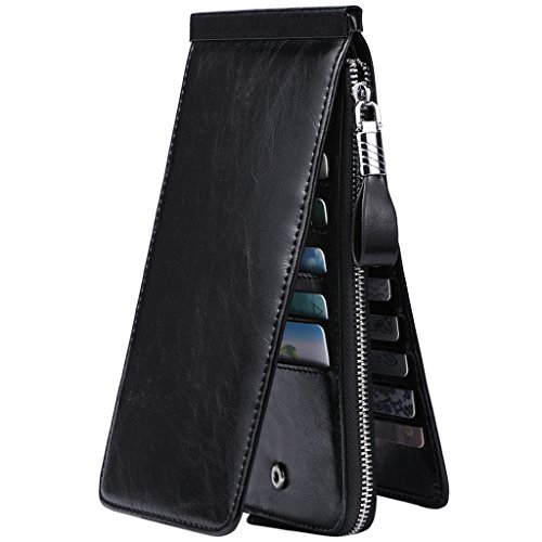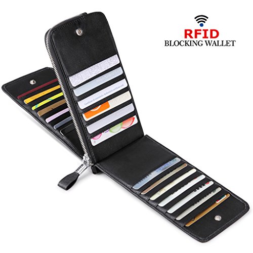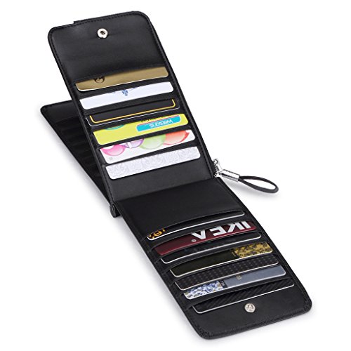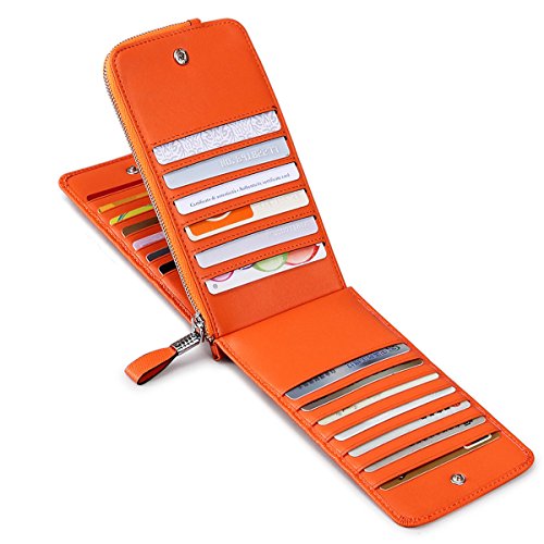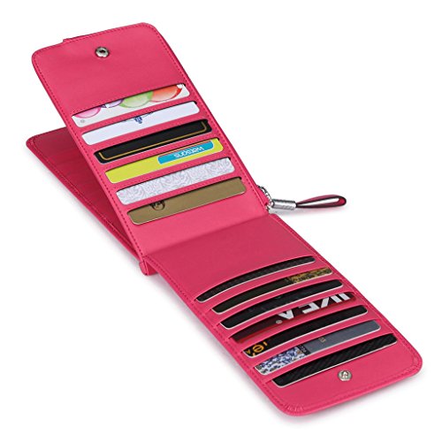 This is a fashion and practical secure credit card holder/wallet to keep your cards / money well organized. It has 26 card slots, 1 zipped pocket. You can use it to hold all your credit cards, business cards or loyalty cards, etc. And the center zippered pocket allows you to keep your smartphone, receipts, cash, change or coins in it. It is also the perfect size to slip in your purse or bag. Perfect credit card organizer wallet to just grab and go.