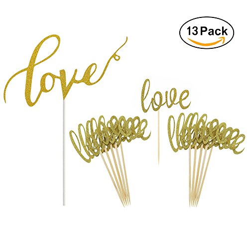 - Wedding Bridal Shower Engagement Party Decorations Supplies -- Paper cupcake cake toppers includes 1 x "Love" monogram cake topper, 12 small letter "love" cupcake picks, a total of 13.