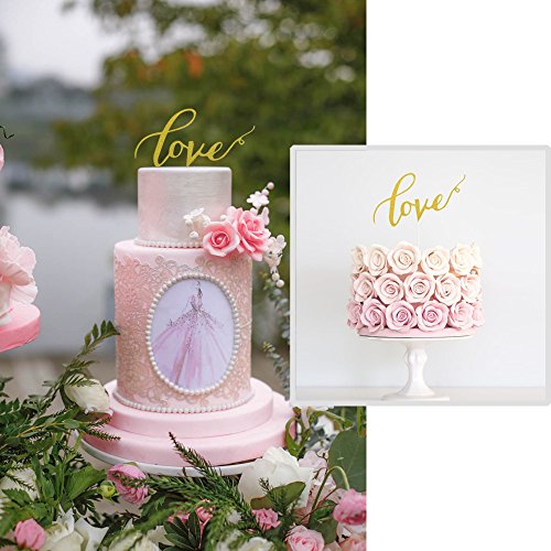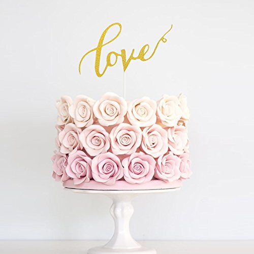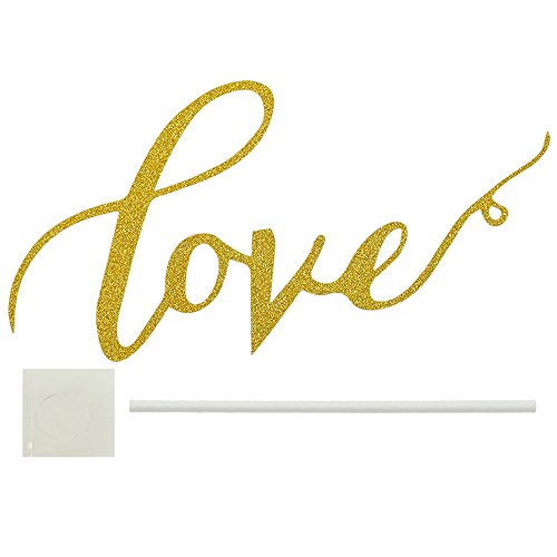 - Glitter Love Cake Toppers Bright Colors -- Gold cake topper is single sided golden onion paper topper, elegant design will diffuse romance and elegance from every little detail.
