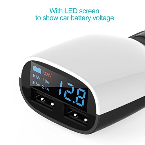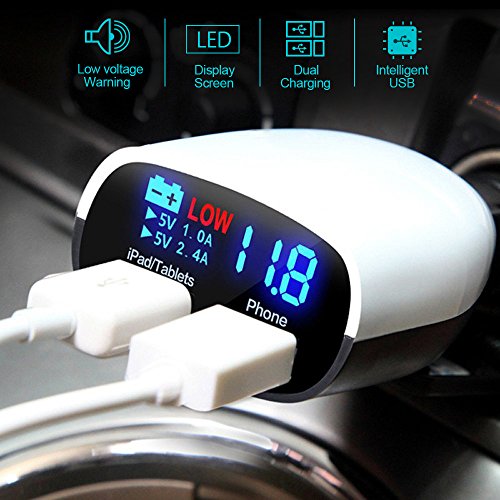 - Feature : Smart Voltage Alarm: LED Display accurate car battary voltage,monitor your car's safety anytime.When the voltage is below 11.8V ,The "LOW" will light up. It is huge advantage for not car-mind guys who hopefully you don't run it completely down if you are trying to continue to charge your phone with the car turned off. And safety tool remind you of when to replace one battary in case stranded out in the boondocks. / LED Dual USB Charger: 2 USB Port 3.4Amp super fast charger and charge your Cellphones & Tablets simultaneously at full speed,Save time.And the LED clearly display the charging status. / Intelligent IC chipset: The current will automatically share while using, the smart chip to offer over-current,over-heat, short circuit protection. / Adjustable Head Pivot: the head with the LED Display is swiveling 90 degree to get the correct angle for ideal visibility.Moreover, with compact size, exquisite and mini design, easy to carry and save space. / Satisfaction Guaranteed: Lantoo promise to provide our customers with 12 months warranty from the date of purchase.Money back policy.