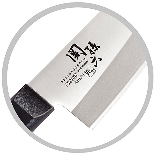 「관손6아즈치3덕 165mm」서는,(칼 따위를) 갊 쉬운 스테인레스강과 칼이 드는 정도 지속의 특수 탄소강을 사용한 3덕 부엌칼입니다.좌우 겸용.품질 표시도신:스테인레스 clad 복합재(잘라 칼:특수 탄소강,측금:스테인레스 스틸)(인첨부(부) 형상/양날칼 첨부)
