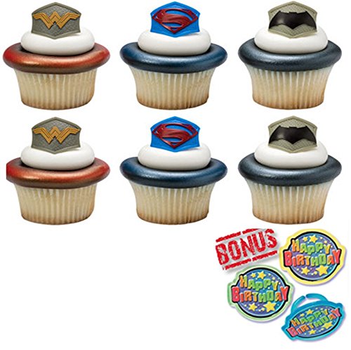 Batman v Superman: Dawn of Justice Emblem Cupcake Toppers and Bonus Birthday Ring - 25 piece