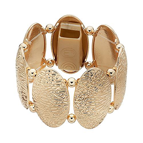 -. Brand : FUNKtional Wearables -. Feature : Now made with improved materials including a patent pending silicone Fitbit Flex holder! / No one will ever know you're wearing a fitness tracker! Never lose your Fitbit again! / Don't ruin your professional or dressy outfit with a plastic wristband! / Beautiful & high quality, it can can be worn with or without your Fitbit! / SIZE: Inner Circumference = 7" inches, Width = 2" inches *Approximately -. IsAutographed : 0 -. IsMemorabilia : 0 -. Label : FUNKtional Wearables -. Manufacturer : FUNKtional Wearables -. ProductGroup : Sports -. ProductTypeName : PERSONAL_CARE_APPLIANCE -. Publisher : FUNKtional Wearables -. Size : 6.6"-7" inches -. Studio : FUNKtional Wearables -. Title : Fitbit Bracelet for Fitbit Flex or Flex 2 Fitness Activity Trackers - The ANGELINA Textured Metal Stretch Fitbit Bracelet