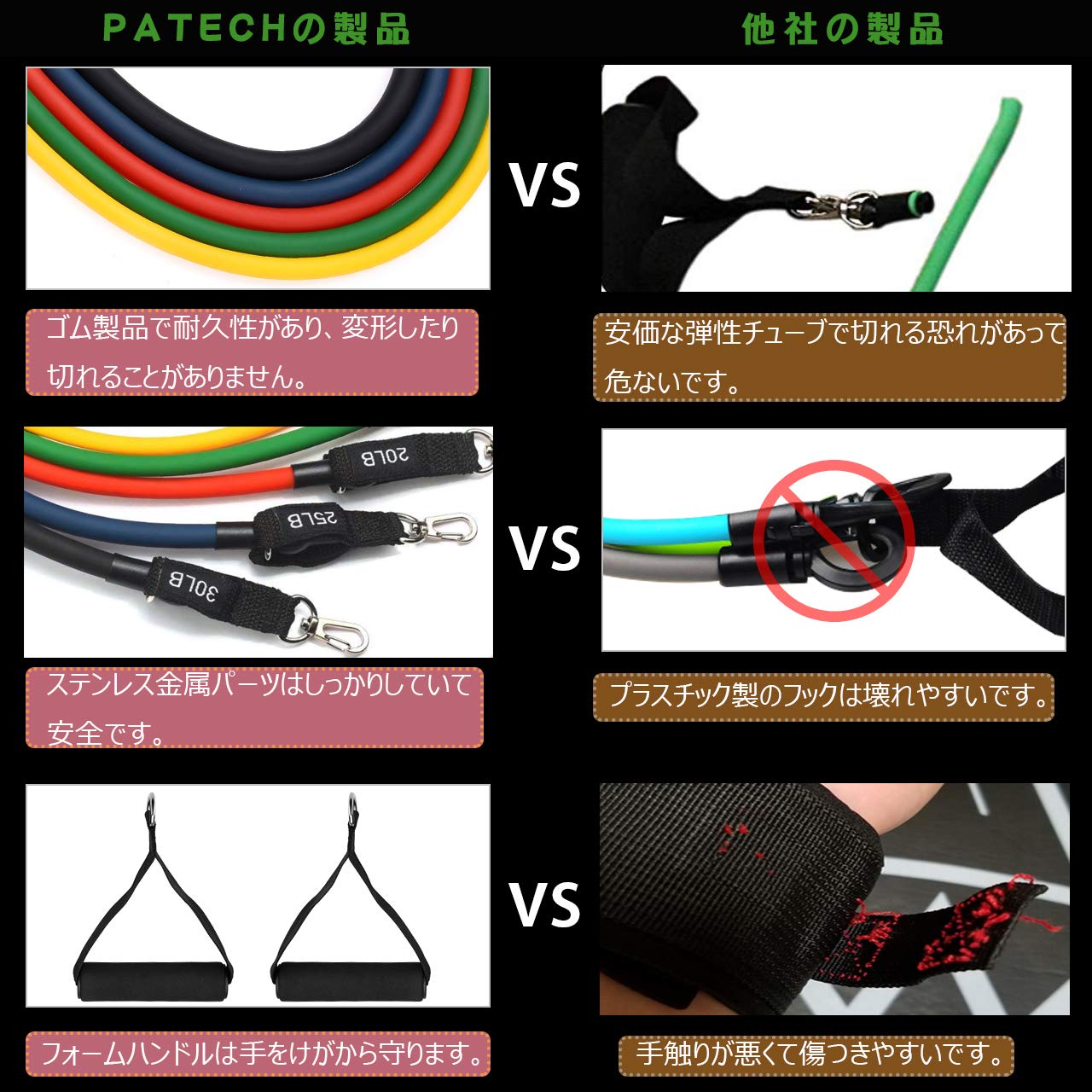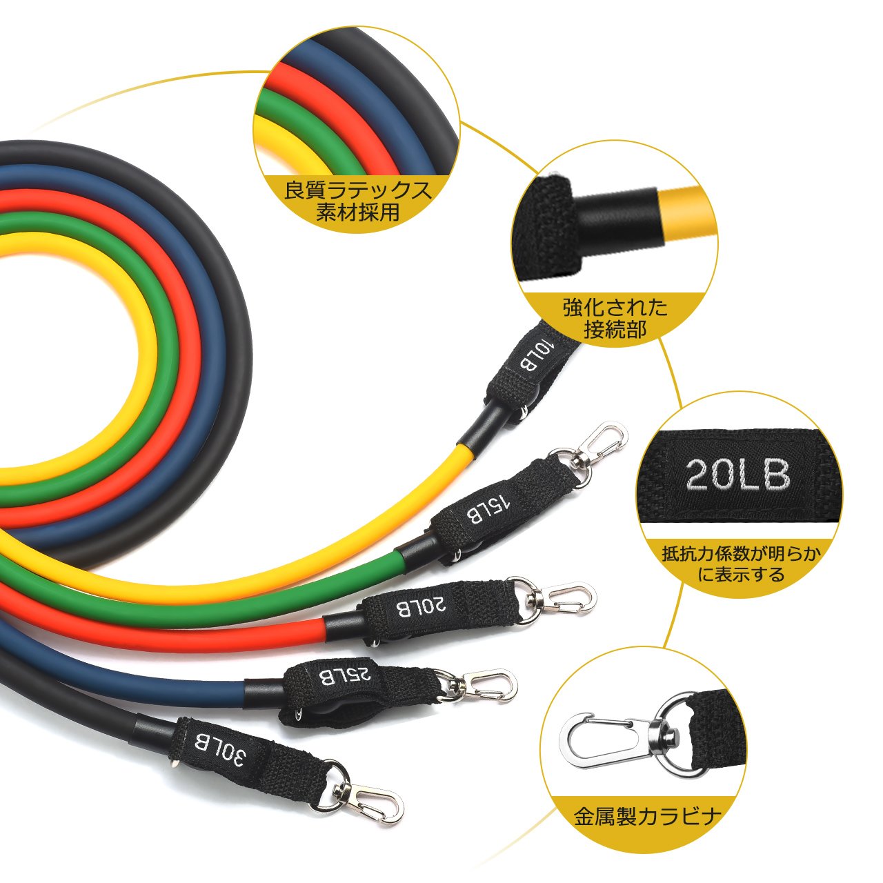🎽【改良版、もっと丈夫&上品】販売されているほとんどのフィットネスベルトが断裂しやすいという欠点に対して、工夫を重ねて工芸を改善しました。高品質のラテックス素材と緻密な足首ストラップ及び頑丈なカラビナを使用しています。📣チューブとカラビナと接続部分はいろいろな実験を経って改良され、チューブカバーと合わせて使用することで摩耗を減少し、断裂を防止して、より長い使用寿命を実現します。📣抵抗力強度を示す数字は直接にフックに表記され、適切な強度の選択とチューブの組合せはより便利になります。📣カラビナ部分は小さくて金属製のものから、大きくて良質なプラスチック製のものに変わり、強度を維持しながら、使用がより便利で、金属のものより耐摩耗性を向上します。