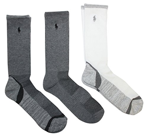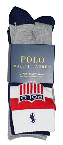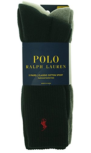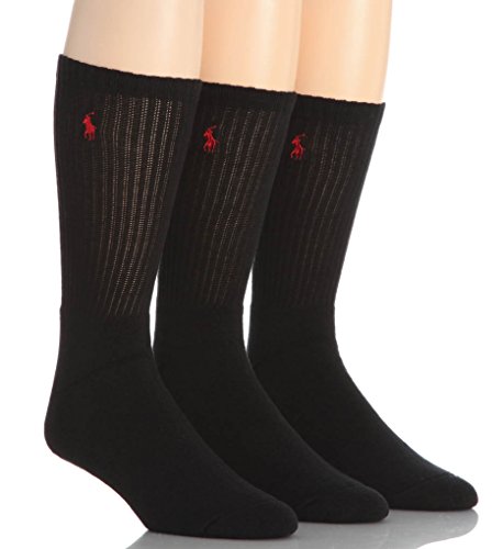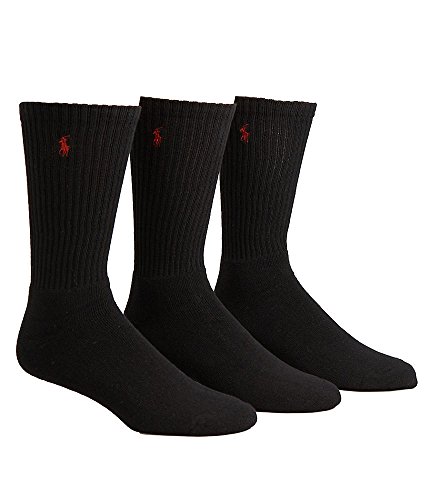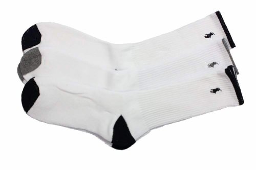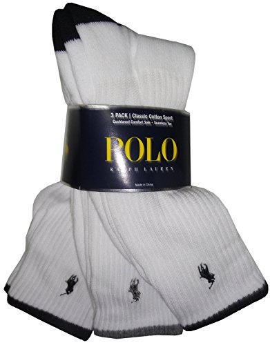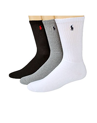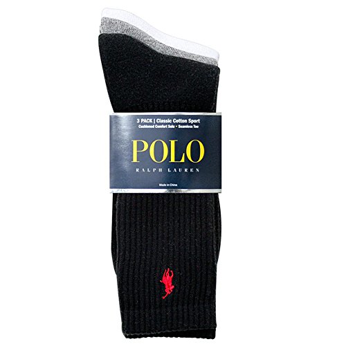 Product Description These crew length sport socks have a cushioned sole, Fits men's shoe sizes 6 - 12.5. 9.5 inches (from heel to top), Save with this 3-pack deal. Perfect for jogging and fast-paced walking Polo Ralph Lauren, Style Number: 821032PK. 0