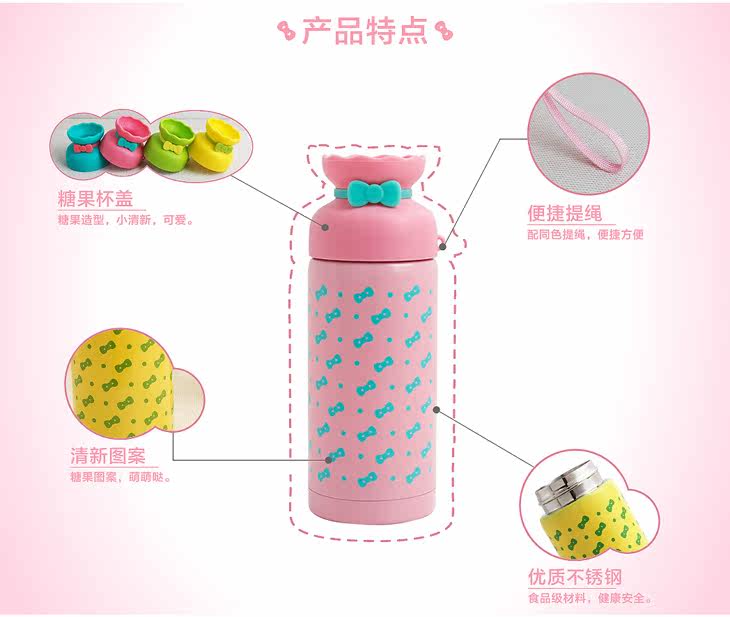 | Product Description | Strawberry candy shape life mug 380ml, candy shape of the lid, filled with small fresh, small cute detachable bow above when headdress na! Oh so sweet every girl should have her little fresh, small cute candy mug, liner made of high-quality stainless steel, health and safety, the cup body with the use of environmentally friendly resin paint repeatedly paint, body paint full nature, film adhesion strong, tough and wear-resistant, durable, feel good, with the same color Tisheng, beautiful and convenient convenience, many user-friendly design make it more convenient and practical, more portable, sophisticated technology lets have it Oh you are different, you adorable little master who, manpower necessary for a cup of sweet princess yo O (∩_∩) O ~ |