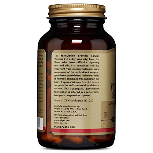 WHAT'S INSIDE: The formulation of Dry Vitamin E with yeast-free selenium provides natural Vitamin E in a dry (non-oily) form for those who may have a difficult time digesting fats or oils. Also, this synergistic, antioxidant formulation is offered in a convenient, two-piece vegetarian capsule