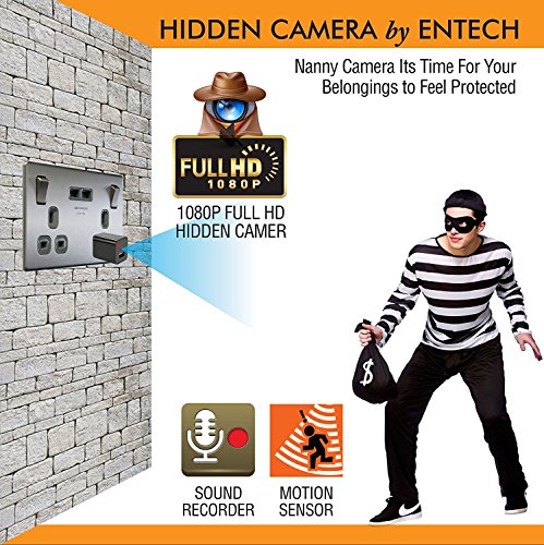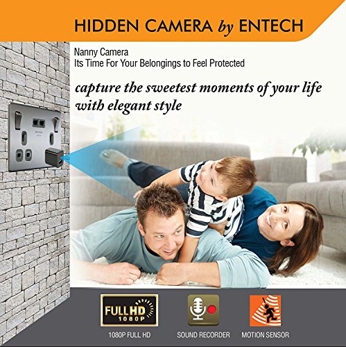 USB Hidden Camera - Nanny Camera USB Charger Spy Camera - by Entech Full 1080P w/ 32GB Internal Memory - Motion Sensor - Mini Hidden Cameras Wall Charger - Home Security - High Definition