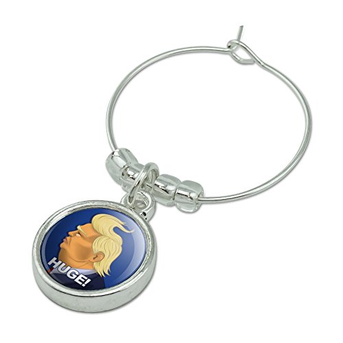 -. Title : Huge! Donald Trump Caricature with Wind Blowing Hair Funny Wine Glass Charm Drink Marker
